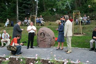 Leider war der Märkischen Oderzeitung der schöne Bericht von Frau Rataj und Herrn Markert über die Einweihung des Denkmals keinen PLatz auf den Seiten 15 oder 17 der Wochenendausgabe wert - das bedeutet: Bilder in schwarz/weiß und keine Veröffentlichung des Beitrages im Internet. Da ich nun keinen Link zur MOZ schalten kann, müssen Sie leider mit meinem unvollkommenen Scan vorliebnehmen