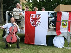 Joachim Friedrich, Urenkel von Ferdinand Kindermann, trägt auf dem Cello die Burree von J.S. Bach vor