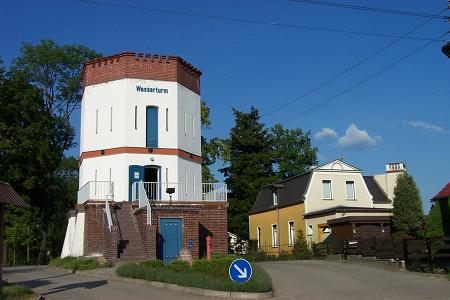 Der Wasserturm wurde 1897 von Ferdinand Kindermann erbaut, um die junge Villenkolonie mit Trinkwasser zu versorgen. Mit Hilfe der Wasserkraft von der Mühle wurde das Wasser aus der Margaretenquelle gefördert, dann über eine 800 m lange Leitung auf den 34 m höher gelegenen Wasserturm gepumpt und von dort in die Haushalte verteilt. 1927 hatte die Rohrleitung der Wasserversorgung eine Länge von 5.103 m, an die 103 Häuser angeschlossen waren.