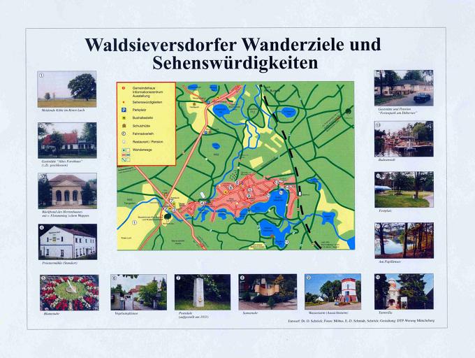 Das alte Wasserwerk wurde durch die Gemeinde zu einer Ausstellung über die Waldsieversdorfer Wasserversorgung sowie über Wasser in der Märkischen Schweiz umgestaltet. Sie finden hier neben der original erhaltenen Pumpanlage eine kleine Ausstellung zu historischen Haushaltsgegenständen sowie im Freigelände die rekonstruierte Brunnenfassung der Kindermann´schen Margaretenquelle (benannt nach seiner Tochter Margarete), einige landwirtschaftliche Geräte und vier Schautafeln über die Waldsieversdorfer Wasserversorgungen, Wasser - und Windmühlen in der Märkischen Schweiz, Sehenswürdigkeiten und Wanderziele sowie Leben am und im Wasser.